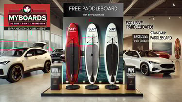 Looking for a marketing strategy that turns heads and keeps your brand top of mind? Custom-branded stand-up paddleboards (SUPs) and picklepong tables offer an unforgettable way to engage your audience, whether at corporate events, trade shows, auto & marine dealerships, casinos, or fundraising endeavours.